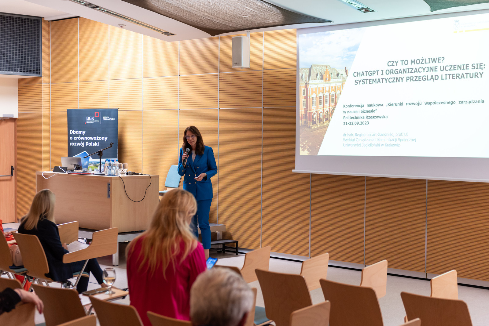 Moderatorami sesji byli: dr hab. inż. Agnieszka Cholewa-Wójcik, prof. Uniwersytetu Ekonomicznego w Krakowie, dr hab. inż. Dariusz Siemieniako, prof. Politechniki Białostockiej, prof. Akademii Leona Koźmińskiego w Warszawie. Podobnie jak podczas pierwszego dnia, wspólnym tematem łączącym bardzo ciekawe, jednak różnorodne wystąpienia były nowoczesne technologie oraz człowiek. W trakcie wystąpień nie zabrakło gratulacji i życzeń kolejnych 30 lat dla Wydziału Zarządzania.
