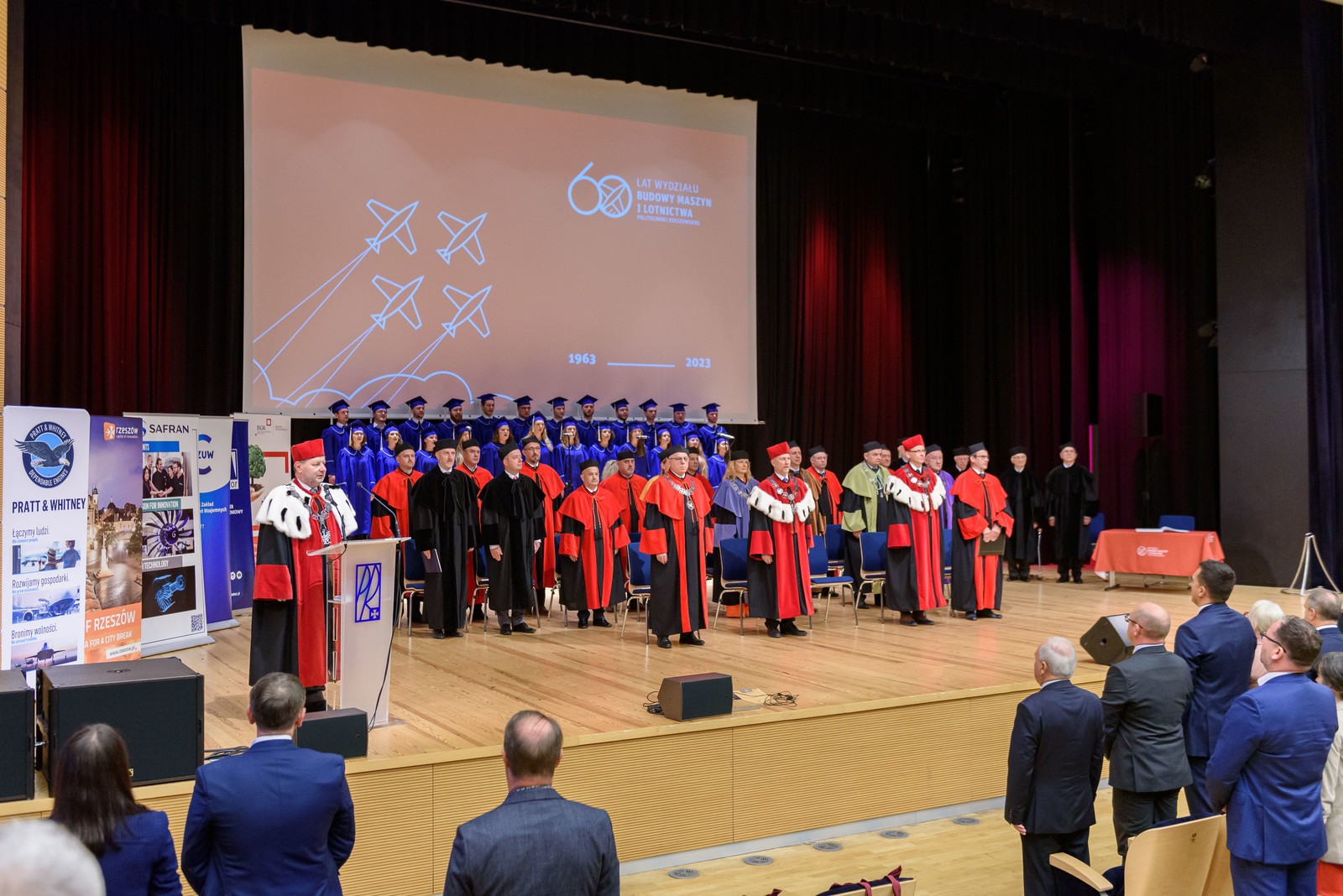 Dziekan prof. PRz A. Marciniec przedstawił historię Wydziału Budowy Maszyn i Lotnictwa, kolejne lata rozwoju, zasługi i sukcesy pracowników i studentów. Omówił strukturę wydziału, którą stanowi 10 katedr i 2 zakłady obejmujące typowe obszary dla dyscyplin inżynieria mechaniczna oraz inżynieria materiałowa. Największe z nich to: Katedra Inżynierii Lotniczej i Kosmicznej, Katedra Technologii Maszyn i Inżynierii Produkcji, Katedra Konstrukcji Maszyn. Podkreślił, że znakomita i nowoczesna baza naukowa, w tym wyjątkowe w skali Europy laboratoria, pozwalają prowadzić badania dla wielu gałęzi przemysłu. Zaprezentowano także film zrealizowany na podstawie archiwalnych materiałów TVP Oddział Rzeszów.