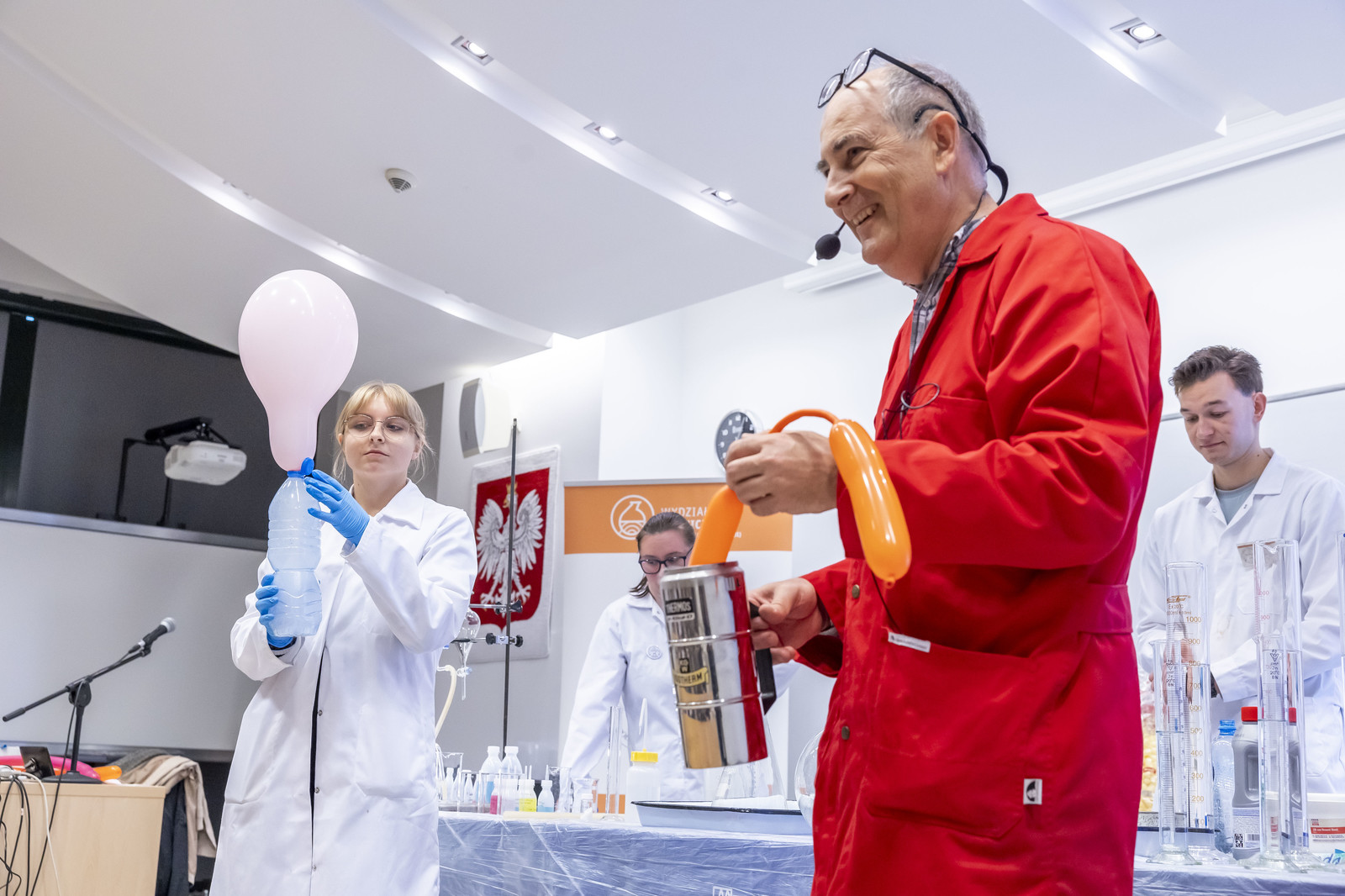 Liczną widownię zgromadziły pokazy chemiczne prezentowane m.in. przez Koło Naukowe Esprit, pokazy fizyczne realizowane przez Koło Naukowe FOTON, a także pokaz wysokich napięć zrealizowany przez Studenckie Koło Naukowe MegaVolt. Wyjątkowy spektakl popularnonaukowy „Kingsajz – czyli klasyczne pokazy fizyczne w wielkiej skali” poprowadzili Małgorzata Wilczak i Paweł Pasterz.