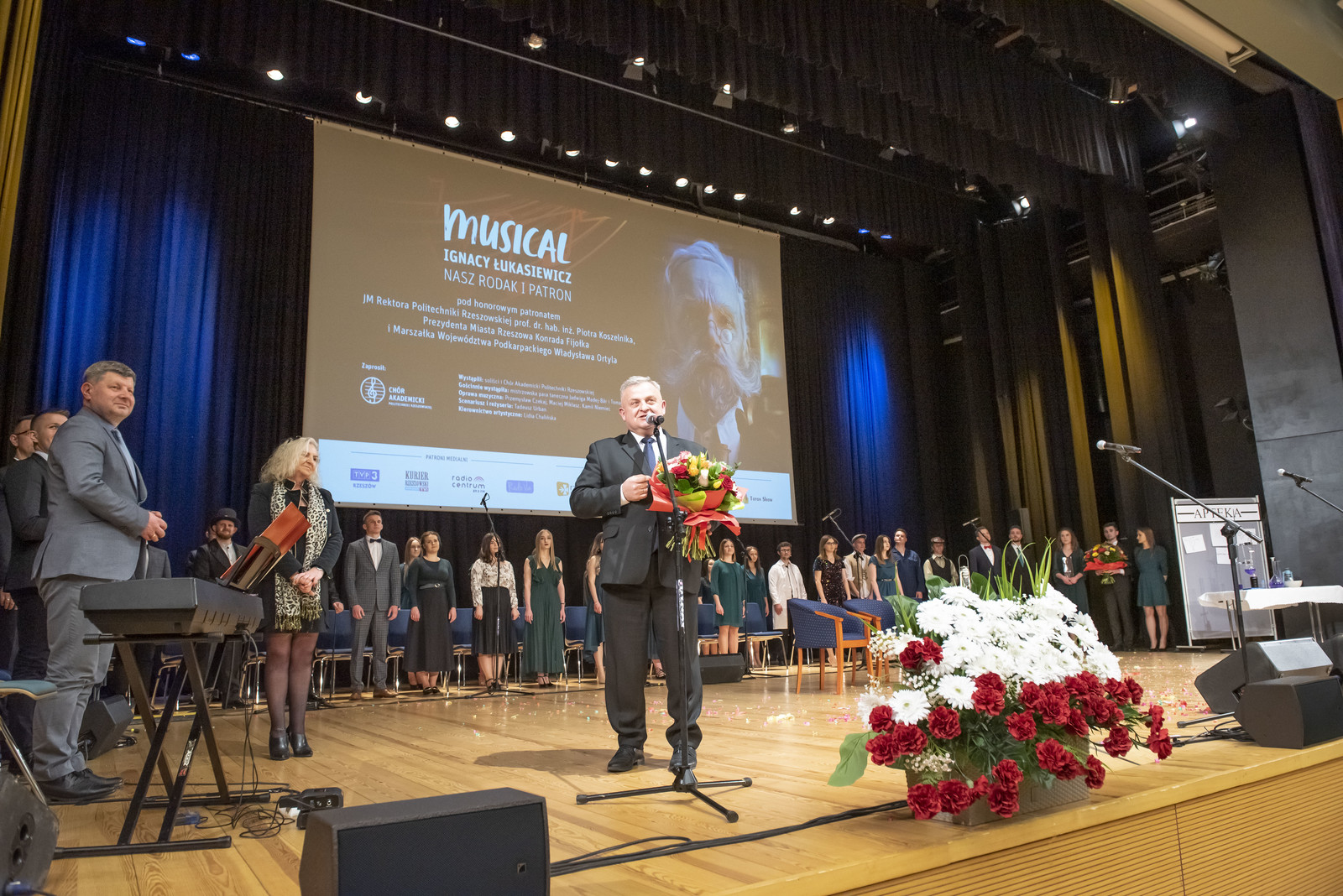 Autorem scenariuszu musicalu „Ignacy Łukasiewicz – nasz rodak i patron” jest Tadeusz Urban. Wydarzenie w scenie balu uświetniła mistrzowska para taneczna – Jadwiga Madej Baer i Tomasz Rusin, a oprawę muzyczną zapewniali rzeszowscy muzycy i przyjaciele Chóru – Kamil Niemiec, Przemysław Czekaj i Maciej Mikłasz. W przedstawieniu wystąpili studenci naszej uczelni – chórzyści Chóru Akademickiego PRz, a kierownikiem artystycznym wydarzenia była dyrygent chóru Lidia Chalińska.