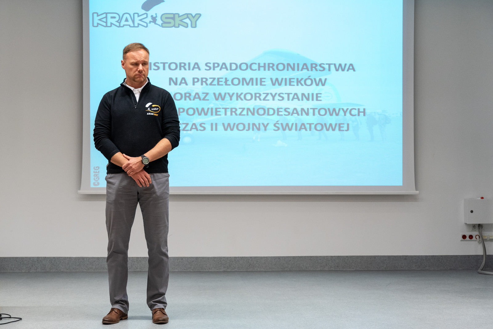 Zajęcia miały formę multimedialnego wykładu prowadzonego przez Grzegorza Grzywnę, doświadczonego instruktora klasy mistrzowskiej, który podczas swojej służby wojskowej wyszkolił ok. trzech tysięcy żołnierzy. Są wśród nich zawodnicy reprezentacji Polski w międzynarodowych zawodach Pucharu Świata w celności lądowania.
