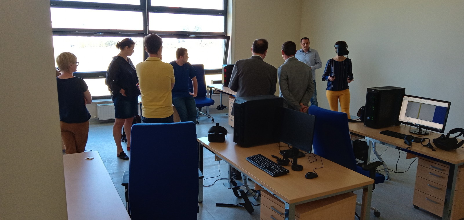 Zespół pracowników z Katedry Mechaniki Stosowanej i Robotyki na Wydziale Budowy Maszyn i Lotnictwa opracował w ramach zadania programy w postaci interaktywnego kursu obsługi, utrzymania ruchu i serwisowania stacji zrobotyzowanych zrealizowanych z wykorzystaniem wirtualnej rzeczywistości. Uczestnicy warsztatów mieli możliwość przetestowania tego produktu w ramach wielu dedykowanych kursów specjalistycznych, których tematyka mieści się w całości w dyscyplinie inżynieria mechaniczna. Otrzymany produkt stanowi oryginalne, autorskie narzędzie o bardzo dużym potencjale wdrożeniowym i będzie zastosowany w licznych pracach zleconych o charakterze szkoleniowym. Dzięki zaangażowaniu w to wydarzenie pracowników Katedry Awioniki i Sterowania dr. hab. inż. Pawła Rzucidły, prof. PRz, mgr. inż. Adama Treli, mgr. inż. Andrzeja Początka oraz pracownika Katedry Pojazdów Samochodowych i Inżynierii Transportu dr. inż. Krzysztofa Lwa zaprezentowano również możliwości szkoleniowe symulatora lotu oraz symulatora jazdy - kabiny samochodu ciężarowego SCANIA.